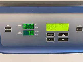 Dekontamineringsprosessen starter. CO₂‑skapet teller ned prosessen fra 15 timer. Gjenværende tid vises i displayet